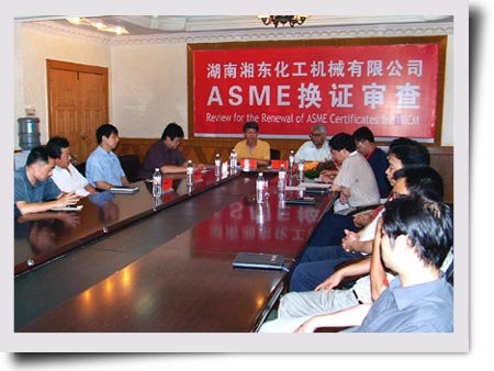 7月10日,美國機械工程師協會(ASME)派出聯檢組,對我公司進行了ASME U、U2和NBBI(美國鍋爐及壓力容器檢驗師總部)R證書換證審查,同意向ASME及NBBI推薦更新我公司U、U2及R授權證書。 我公司以往取證、換證均采用ASME規范材料,材料采購周期長、成本高。而此次換證我公司采用ASME 2506號規范案例,成功應用GB 6654 16MnR材料制作演示產品,為今后鋼印產品采用國產16MnR材料積累了成熟的經驗。我公司早在1992年就取得了ASME U、U2及NBBI R授權證書及鋼印,本次是第五次通過換證審查。